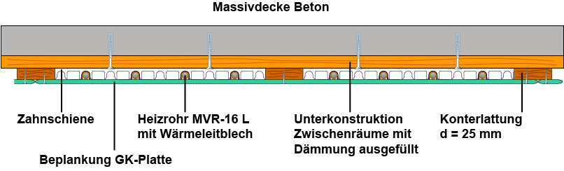 - Klare Trennung zwischen Deckenheizung und Deckenbeplankung.